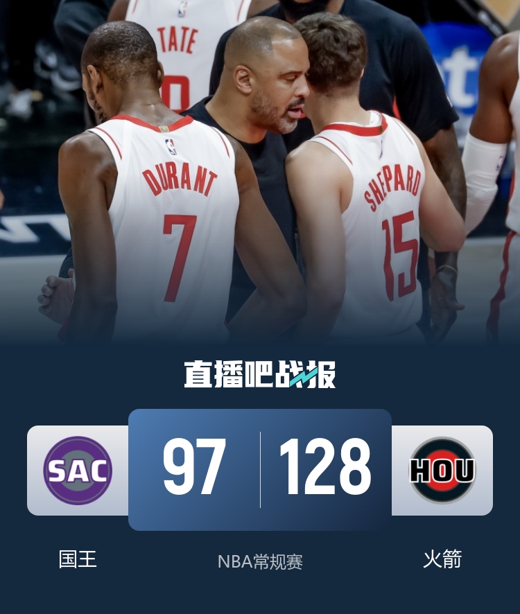 火箭队战胜国王队 申京砍下26分13篮板11助攻 谢泼德首发贡献28分 杜兰特三节取得21分5助攻_NBA直播